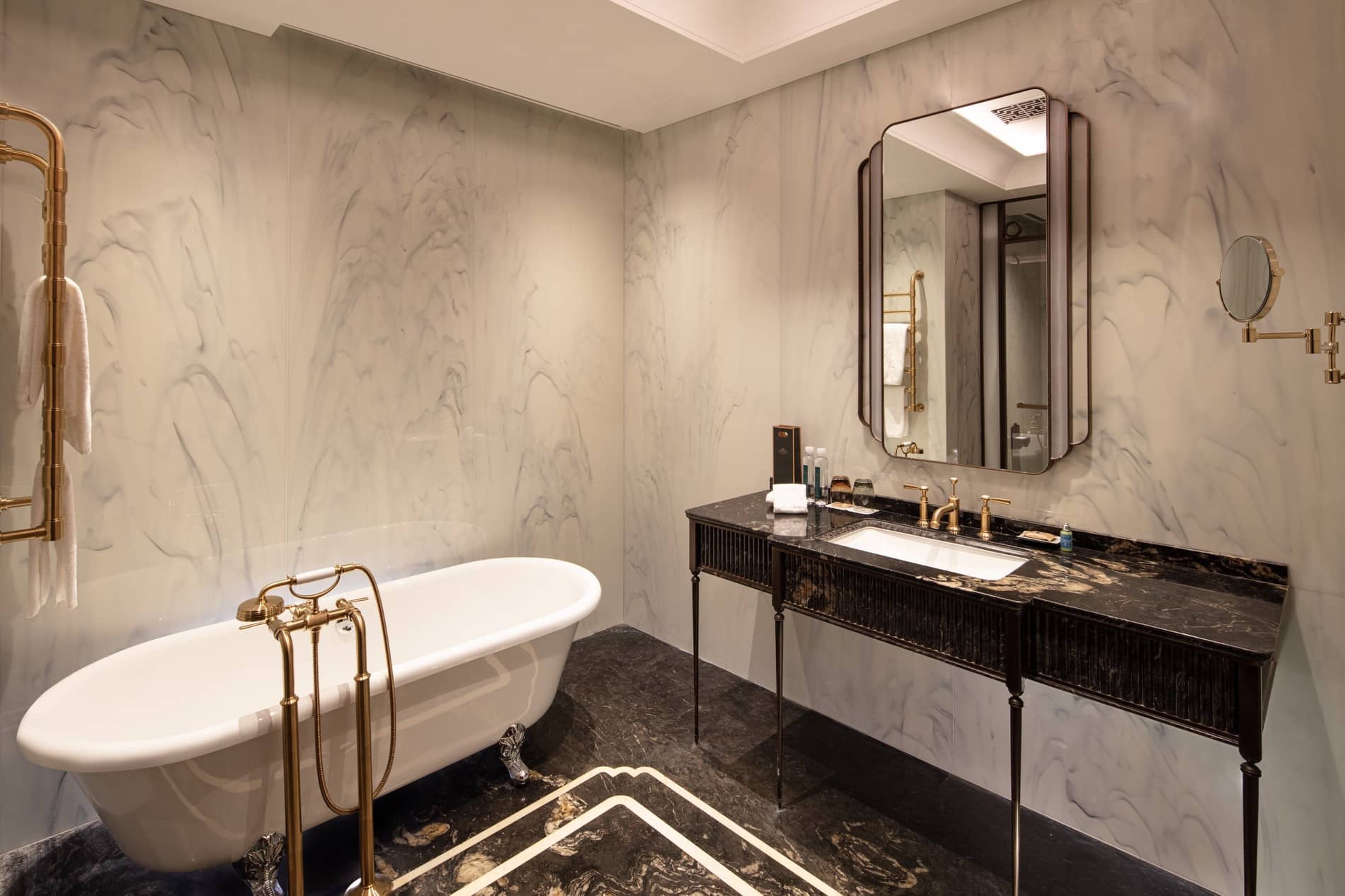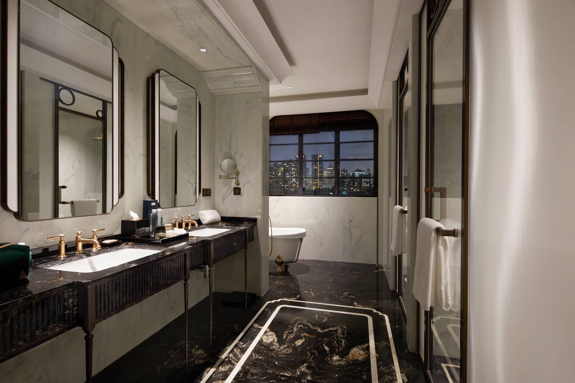 La suite s’efforce de reproduire les détails architecturaux des appartements des années 1930, tout en intégrant un savoir-faire moderne pour améliorer la qualité. La chambre dispose d’un salon et d’une salle de bains supplémentaire.